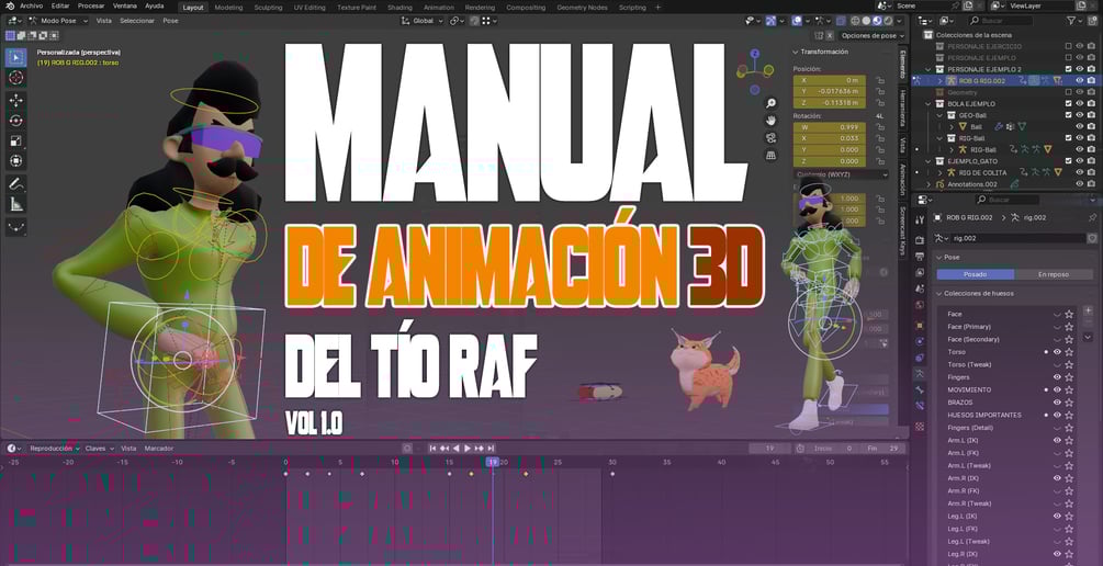 OBTÉN 25% DE DESCUENTO SI ADQUIERES EL PACK 3 EN 1 !! Obtendrás 6 horas y media de clases además de más de 5 archivos de ejemplo para cada uno de los ejercicios, 2 personajes para animar y un glosario de conceptos y atajos de animación 3D con Blender 4.1